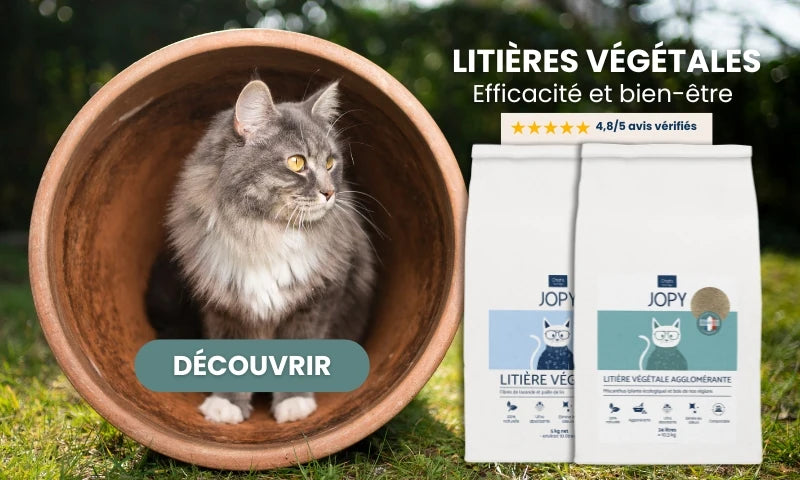 Les litières végétales Jopy sont ultra-absorbantes, anti-odeurs et sans poussière.