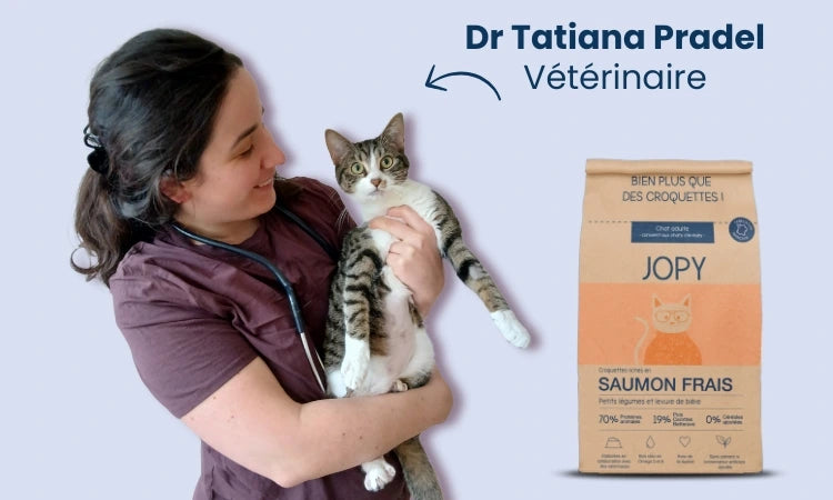 La recette des croquettes Jopy a été élaborée par des vétérinaires spécialistes en nutrition féline.