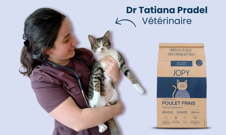 La recette des croquettes Jopy a été élaborée par des vétérinaires spécialistes en nutrition féline.